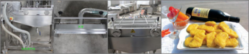 【可以銜接上粉機(jī)、上屑機(jī)、成型機(jī),油炸機(jī)等設(shè)備,從而實(shí)現(xiàn)連續(xù)性生產(chǎn);