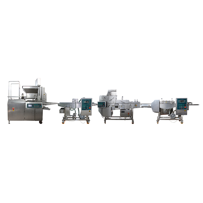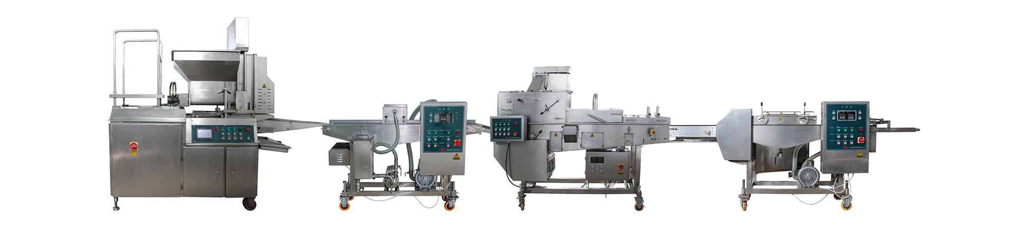 雞塊生產(chǎn)線把混合好的原料經(jīng)過(guò)模板成型,上稀漿,上粉,上稠漿,油炸,速凍等工藝做出不同厚度不同形狀的雞塊。模板可以生產(chǎn)不同形狀的產(chǎn)品(如三角形,橢圓形,卡通雞塊形狀,不規(guī)則形狀)通過(guò)模板更換產(chǎn)品。全自動(dòng)雞塊生產(chǎn)線適用于肉類、水產(chǎn)、蔬菜、奶酪以及它們混合料。上校雞塊生產(chǎn)線的需要配置前處理設(shè)備和后處理設(shè)備:絞肉,混合,油炸包裝等設(shè)備,麥樂雞塊生產(chǎn)線與這些配套設(shè)備組成一條完整的快餐調(diào)理生產(chǎn)線。