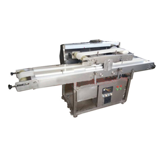 鮮肉切片機(jī)切的是對雞胸肉的橫向(水平)整肉一次性多片切割,還可以一次性把整個(gè)雞胸肉切成蝴蝶形或者心形的形狀也就是把一塊完整的雞胸肉放在機(jī)器這邊的傳送帶,傳送帶傳送過去后這一塊肉就全切好了。