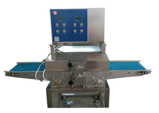 【 .輸送帶為寶石紋,厚度3mm,輸送帶與刀口幾乎貼合,肉片不會(huì)卷到輸送帶內(nèi)。