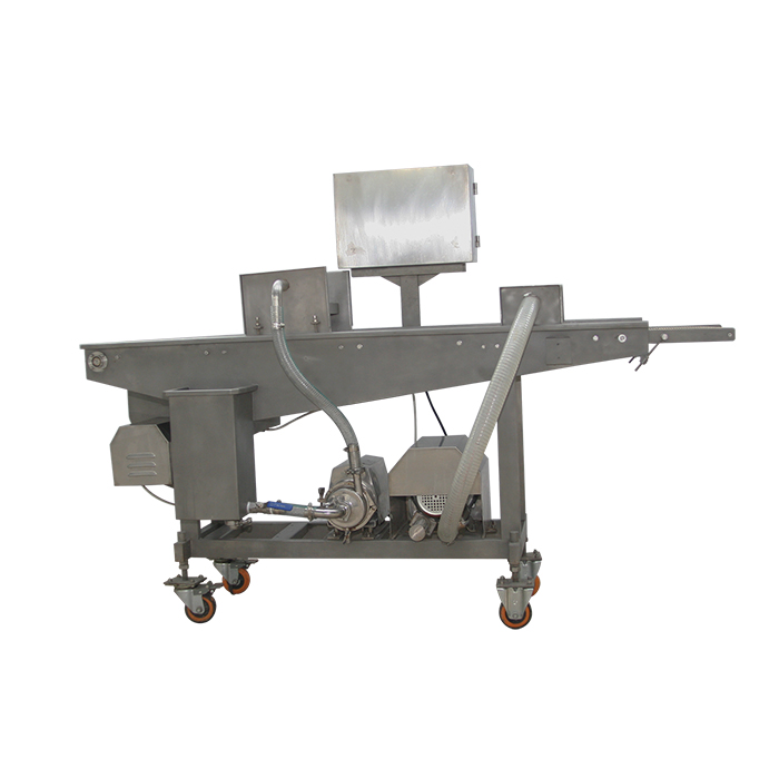 上漿機(jī)是通過(guò)漿幕和下部的承漿板把漿液均勻粘附在產(chǎn)品上,通過(guò)風(fēng)刀時(shí),多余的漿液被吹掉。然后輸入到下一工序。魚塊掛漿機(jī)適合于雞肉、牛肉、豬肉、魚、蝦等海鮮產(chǎn)品,也適用于上面包屑和上粉前的工藝。雞塊上漿機(jī)可以對(duì)市場(chǎng)上流行的雞排,魚排,漢堡肉餅、麥樂(lè)雞塊、魚香漢堡肉餅、土豆餅、南瓜餅、肉串等產(chǎn)品進(jìn)行上漿處理,是食品工廠理想的上漿設(shè)備。