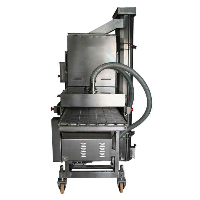肉餅上屑機與上漿機配合使用,裹面包屑機可單獨使用。上面包糠機適合于中等以上干面包糠顆粒,裹康機對市場上流行的漢堡肉餅、麥樂雞塊、魚香漢堡肉餅、土豆餅、南瓜餅、肉串等產(chǎn)品進行上面包屑處理,是快餐店、配送中心、食品工廠理想的上面包屑設(shè)備。