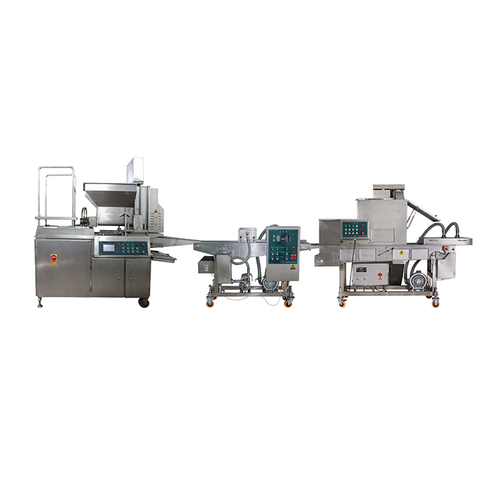 土豆餅生產(chǎn)線把混合好的原料經(jīng)過成型,上漿,上康,油炸,速凍等工藝做出不同厚度不同規(guī)格的土豆餅餅。模具可以生產(chǎn)不同形狀的產(chǎn)品(如三角形,橢圓形,卡通雞塊形狀,不規(guī)則形狀)通過模具更換產(chǎn)品。土豆餅生產(chǎn)線適用于肉類、水產(chǎn)、蔬菜、奶酪以及它們混合料。土豆餅生產(chǎn)線的需要配置前處理設(shè)備和后處理設(shè)備:絞肉,混合,油炸包裝等設(shè)備,油炸土豆餅生產(chǎn)線與這些配套設(shè)備組成一條完整的快餐調(diào)理生產(chǎn)線。