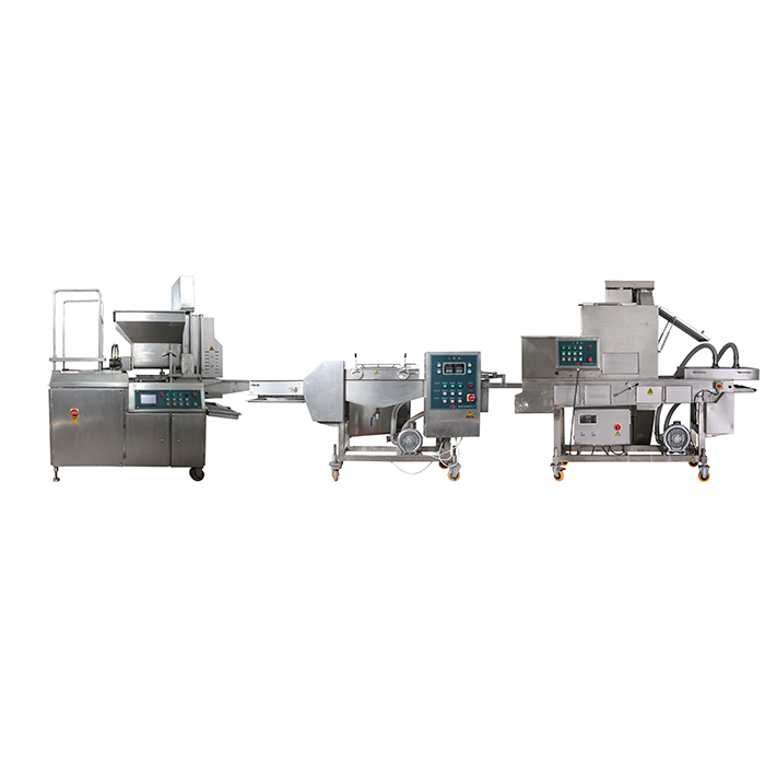 洋蔥圈生產線把混合好的原料經過成型,上濃漿,上康,油炸,速凍等工藝做出不同厚度不同規(guī)格的肉餅。模板可以生產不同形狀的產品(如圓形,三角形,橢圓形,卡通雞塊形狀,不規(guī)則形狀)的洋蔥圈,通過模板更換產品。洋蔥圈生產線適用于蔬菜、奶酪以及它們混合料。蔬菜洋蔥圈生產線的需要配置前處理設備和后處理設備:切丁,混合,油炸包裝等設備